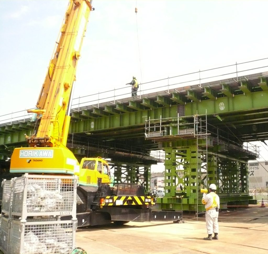 線路に近接する工事現場において建設機械が周囲の構造物や工事従事者に接触しないよう周囲を確認し、建設機械の誘導や声掛けを行う業務です。